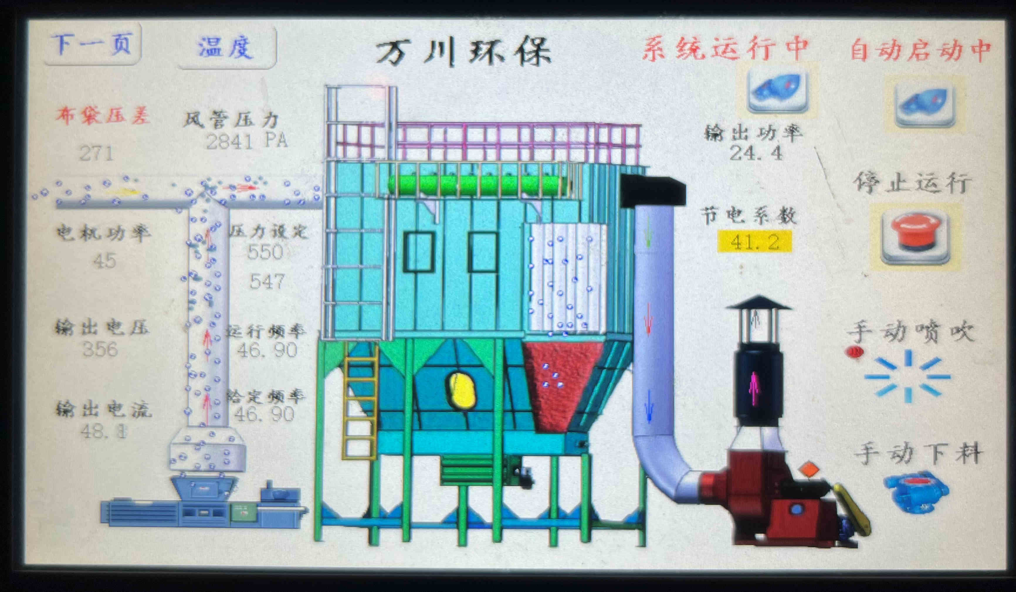(萬川環保布袋除塵器配套電控系統 一鍵啟停操作方便快捷,簡單穩定) (萬川布袋除塵器配套消防噴淋管路,為安全運行保駕護航)
