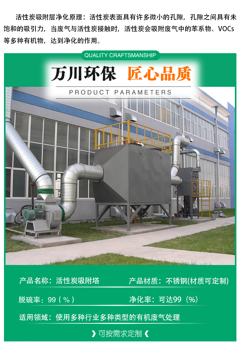 活性炭吸附裝置是一種經(jīng)濟實惠、凈化效率高的有機廢氣處理設備,適用于化工、五金、機械、家具等等行業(yè)的有機廢氣處理,如需定制活性炭吸附裝置,請聯(lián)系我們0769-22627330。