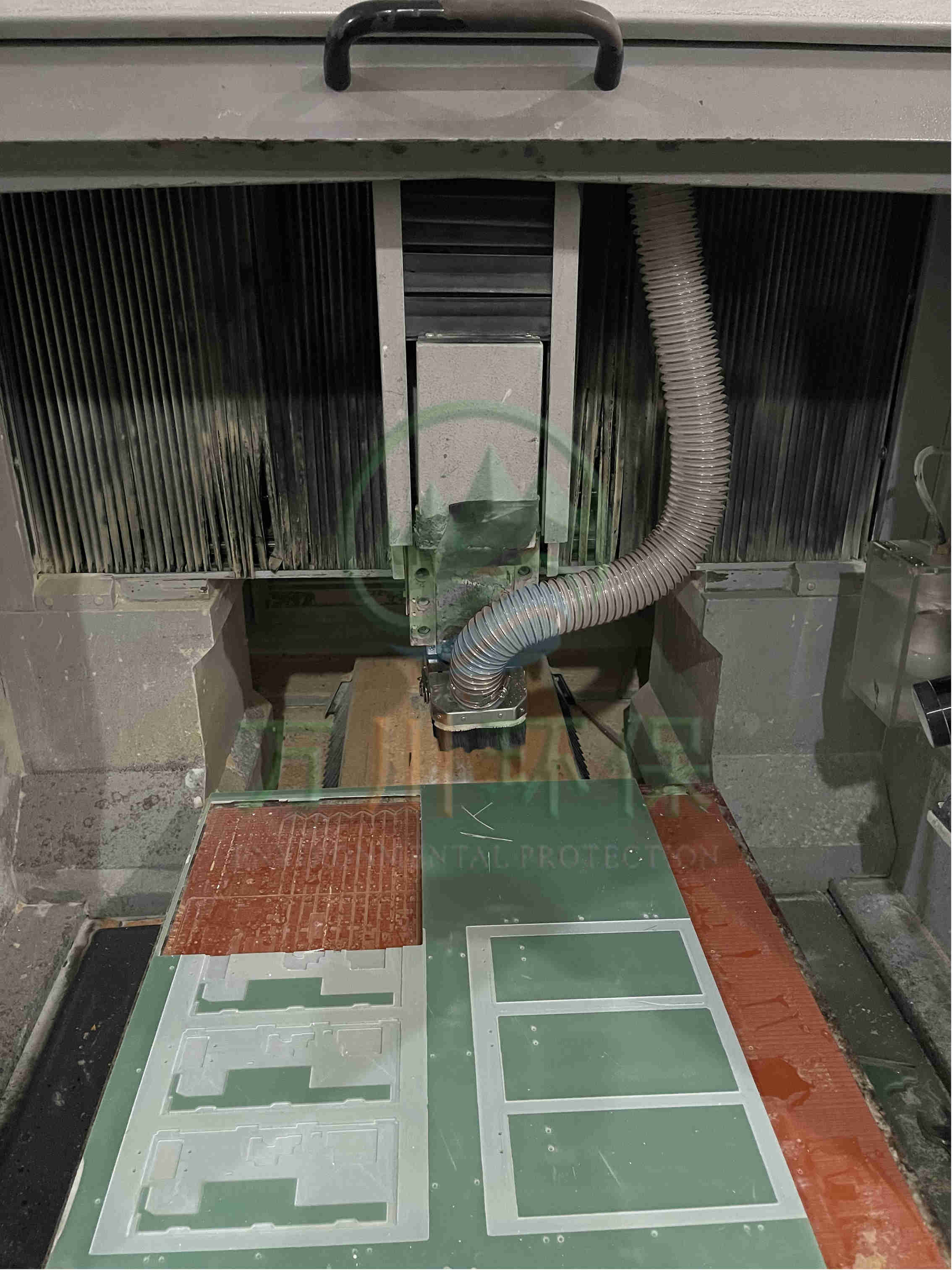 精雕機(jī)工作時(shí)產(chǎn)生的粉塵通過集氣罩、吸塵軟管進(jìn)入到脈沖布袋除塵器中過濾凈化,粉塵落入灰斗,凈化后的廢氣通過系統(tǒng)風(fēng)機(jī)達(dá)標(biāo)排放。